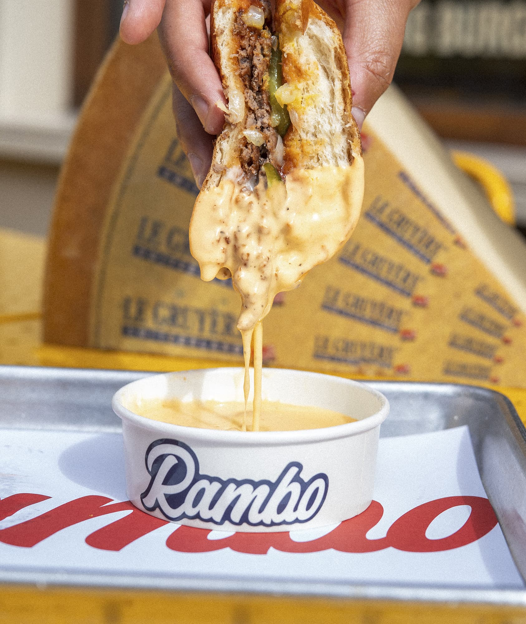 Pour boucler la série en beauté, John Prigogine montre les muscles depuis le spot à smash burgers bruxellois Rambo, en envoyant la sauce la plus cheasy qui soit : de la crème fraîche, une bonne dose du Gruyère AOP, du sel, du poivre, et voilà ! À napper sur tout ce qui bouge, à moins de se l’envoyer directement à la petite cuillère…